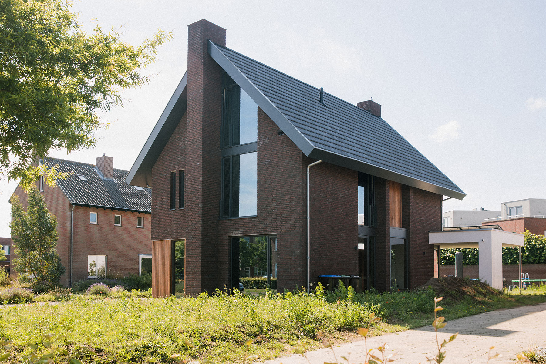In het mooie Veldhoven vlakbij Eindhoven hebben wij een riante nieuwbouwwoning gerealiseerd aan de Strijpsebaan. Deze moderne woning heeft veel glas in de gevel wat het een open geheel maakt. Aan de achterzijde is een grote overkapping aan de woning geplaatst waar tevens een stuk woning onder huist. Bij deze overkapping is een buitenhaard gemaakt met schoorsteen om ook in de koudere tijden buiten te kunnen genieten. De houten gevelbekleding is van Afromosia en aangebracht door HBR Timmerwerken.